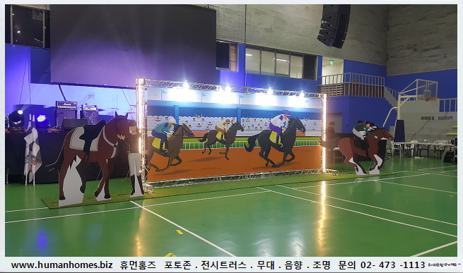 휴먼엔터테인에서는 행사 컨셉에 맞춰 대형 포토존과 경마등신대 등을 설치하였습니다. - - 규격 : 가로8m x 세로 2.7m
