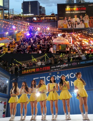 신나는 디제잉 파티 행사와 네네치킨 광고 모델인 오마이걸의 상큼한 무대행사 .다트게임,