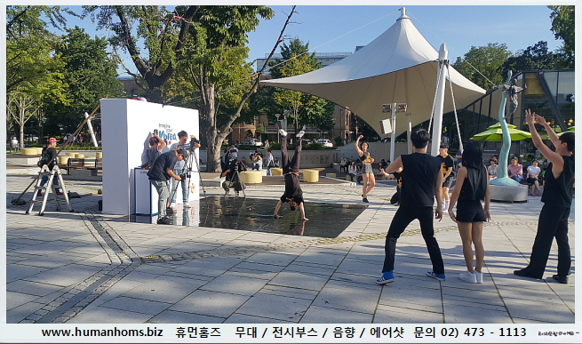 마로니에 공원 내 야외 공연장에 설치한 공연백월과 공연 무대 설치입니다.