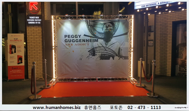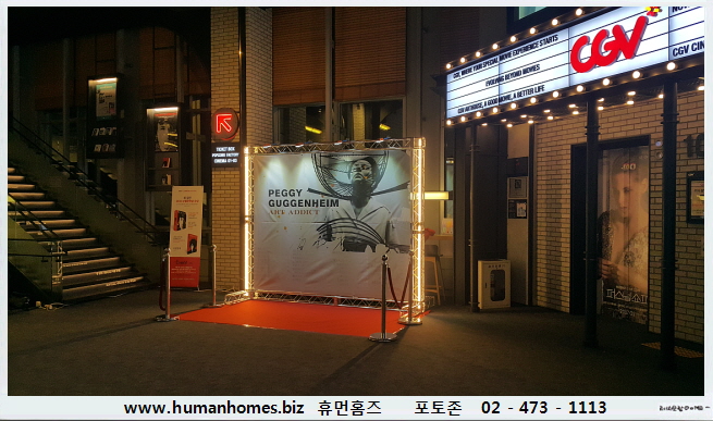휴먼홈즈에서는 이 날 시사회에 페기 구겐하임 포토존을 설치하였습니다.