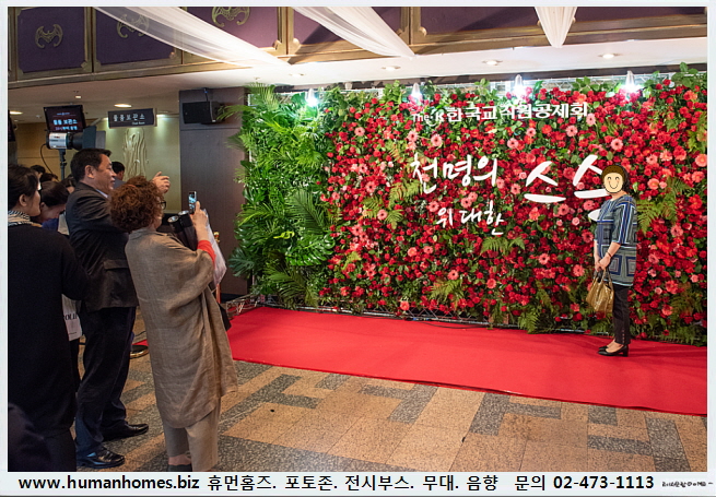 휴먼홈즈에서 설치한 웅장한 플라워 포토존과 로비입구에 설치한 대형 포토존설치 입니다.